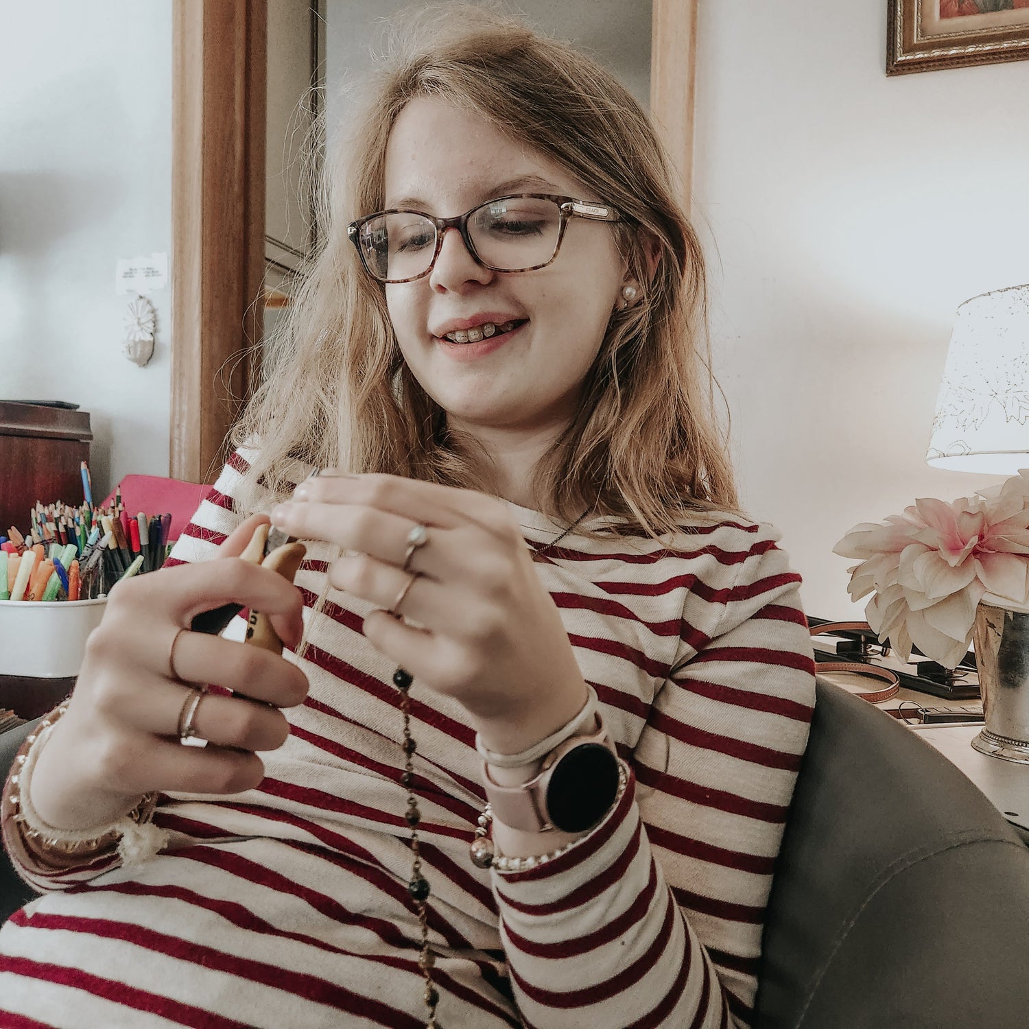 My name is Lucy, I started making Rosaries when I was 10 years old. Every Rosary is handcrafted by me and wire-wrapped bead by bead, with antique replica medals chosen for their beauty and craftsmanship. Over 2,000 Rosaries later, I still make each one as if it's the first.