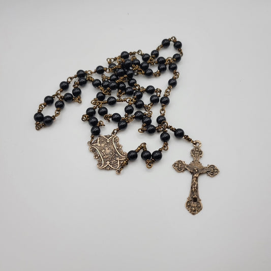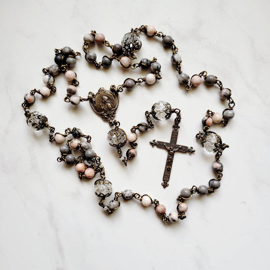 Antique St. Joan of Arc Pink Jasper Bronze Wire-Wrap Handmade Rosary – Handmade Catholic Heirloom